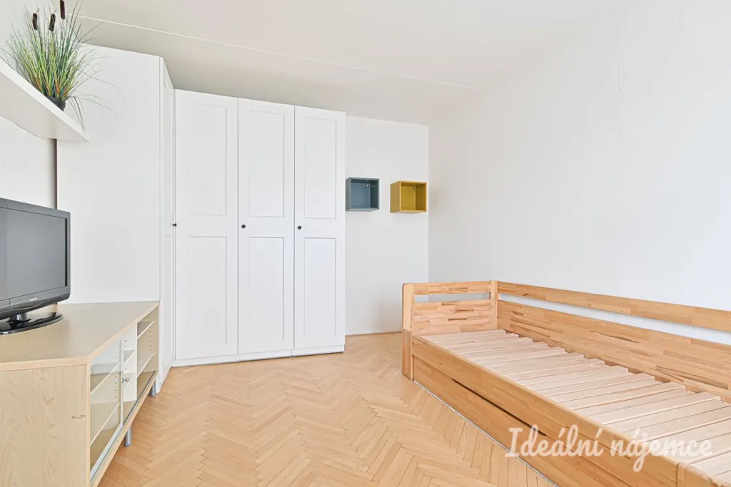 Oddělený pokoj disponuje postelí, prostornou skříní, psacím stolem a TV skříňkou.