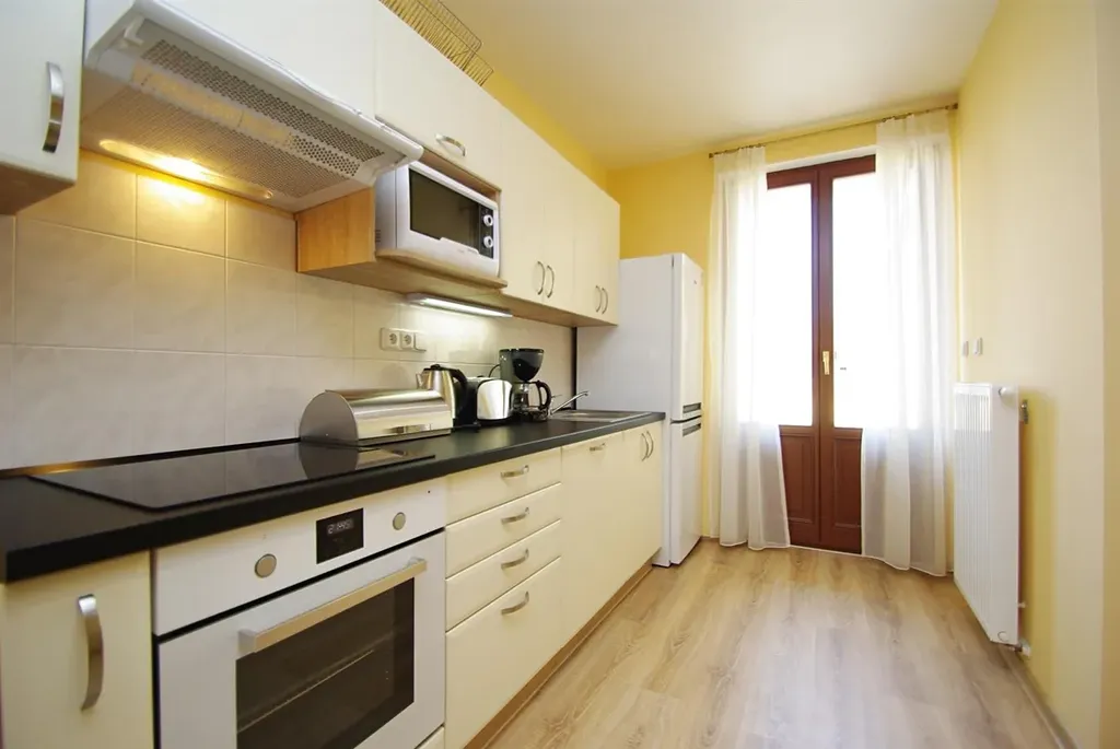 Poplatky: fixní ve výši 3.400,/měsíčně (wifi, úklid domu, výtah, osvětlení, odpady, pojištění) + zúčtovatelné zálohy na spotřebu energií ve výši 2.000, / měsíčně/ osobu. Vratná kauce 1 nájem.
