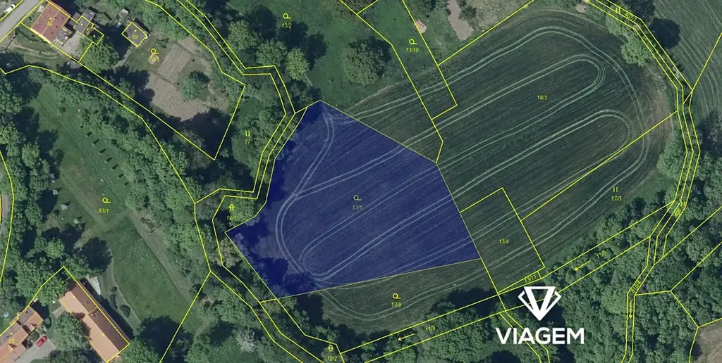 - Parcelní číslo 13/1 (3680 m², 100% podíl, LV 1147)