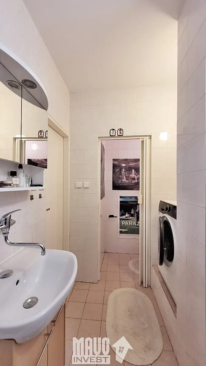 Ojedinělá příležitost prodeje bytu 2+kk a sklep (55,5 m2 + 6 m2) ve funkcionalistickém domě přímo na Karlínském náměstí (10 min. od Václavského náměstí) v 6.NP s výhledem do klidného vnitrobloku. Bydlení ve vysoce atraktivní pražské lokalitě, se seriózními obyvateli domu. Byt je ve velmi dobrém stavu, je vybaven menší minimalistickou moderní kuchyňskou linkou s el. sporákem, vestavnou el. troubou, digestoří a moderní lednicí, dále šatní skříní. V obou pokojích jsou parkety, v předsíni velkoformátová dlažba v dekoru betonu a v koupelně retro dlažba a obklad. Koupelna je vybavena vanou a příčkou odděleným WC. Vchodové dveře do bytu jsou bezpečnostní. Pohyb v domě je zajištěn přes čip vč. výtahu. Vytápění a ohřev v domě zajišťuje plynová kotelna umístěná v suterénu domu. Vnitroblok má zateplenou fasádu. Byt je vhodný jak k okamžitému nastěhování, tak na investici. Nájem bytu můžeme v případě Vašeho zájmu zprostředkovat anebo přenechat současného nájemce. V docházkové vzdálenosti je stanice metra Křižíkova (8 min.), tramvajová zastávka Karlínské náměstí (3 min.), sportovní in-line trasa (10 min.) a taktéž množství obchodů, restaurací, kaváren či pošta. Parkování před domem na modré zóně je bezproblémové. Financování bytu hypotékou Vám zajistíme.