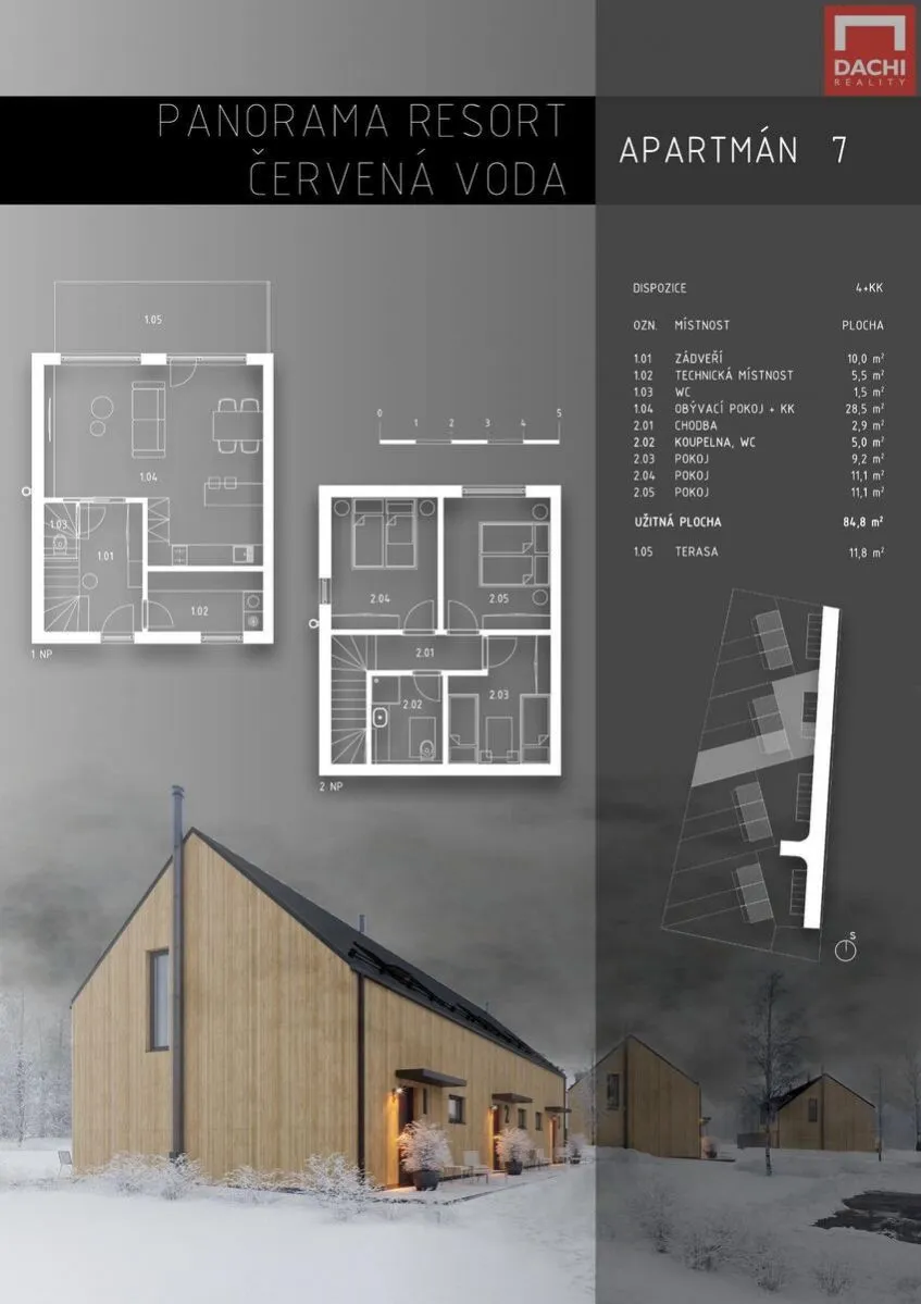 Nabízíme vám exkluzivní horské apartmány v projektu Panorama Resort Červená Voda, který se nachází na pomezí Orlických hor a Jeseníků. Apartmány nabízí úchvatný výhled na ski areál Buková Hora a okolní lesy. Celkem projekt zahrnuje 12 jednotek ve 4 trojdomech s privátním příjezdem, což vám zajistí soukromí a klid.