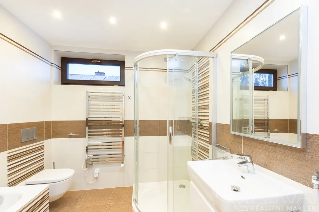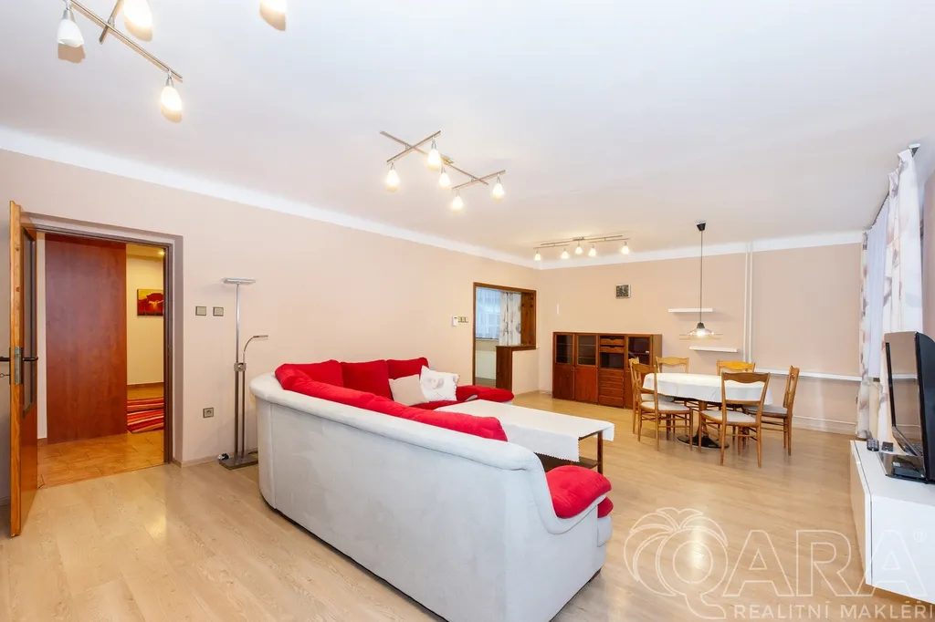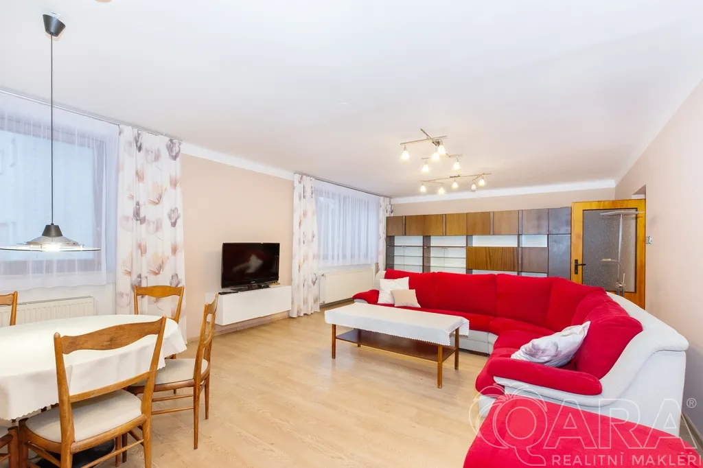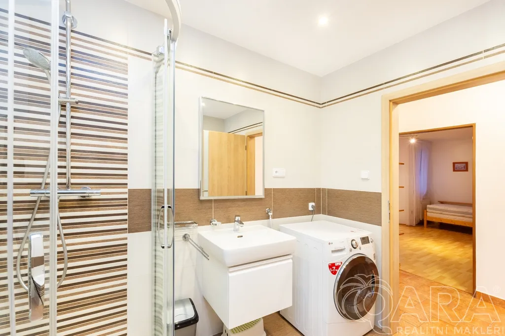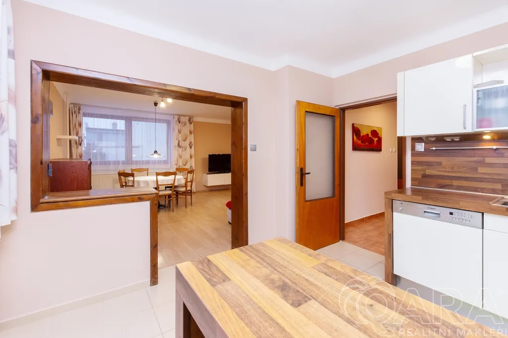 Moderní kuchyně, tři velké ložnice a koupelna s vanou i sprchovým koutem
