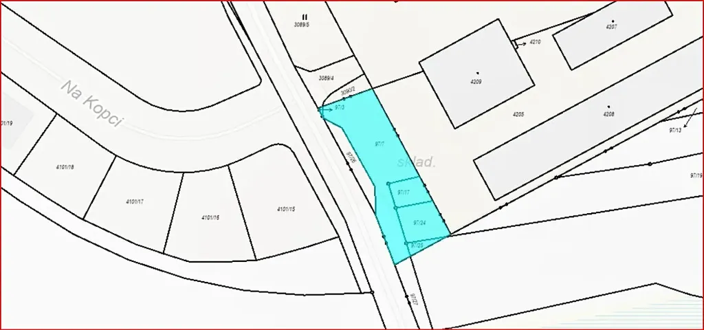 2. Prodejna a sklad stavebnin (bez čp/če, obchod, na p.č. 4209). Jednopodlažní objekt obdélníkového půdorysného tvaru z roku 2015, který lze rozdělit na dvě části: prodejnu stavebnin (vč. kanceláře a sociálního zařízení) a sklad stavebního materiálu. Stavba obdélníkového půdorysu s rozměry 26,6 x 32,3 m. Celková podlahová plocha je 790,34 m².