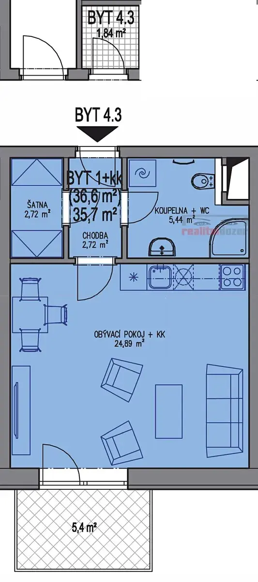 – balkon/terasa 5,4 m²