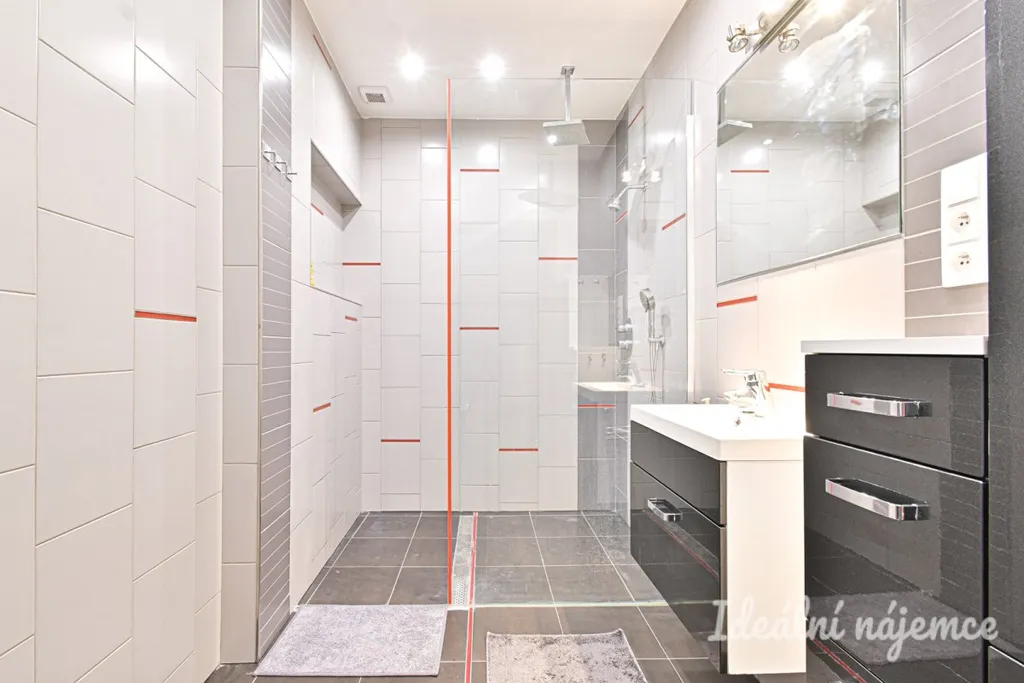 Dispozičně je byt řešen velmi prakticky – obývací část s kuchyňským koutem a dva samostatné pokoje nabízí dostatek soukromí jak pro pár, tak pro rodinu nebo spolubydlení. Kuchyňská linka je vybavena vestavnými spotřebiči včetně myčky, byt se nabízí vybavený dle fotografií. V koupelně je sprchový kout a umyvadlo, toaleta je samostatně. Dostatek úložného prostoru zajišťují vestavné skříně a úložné niky v bytě.