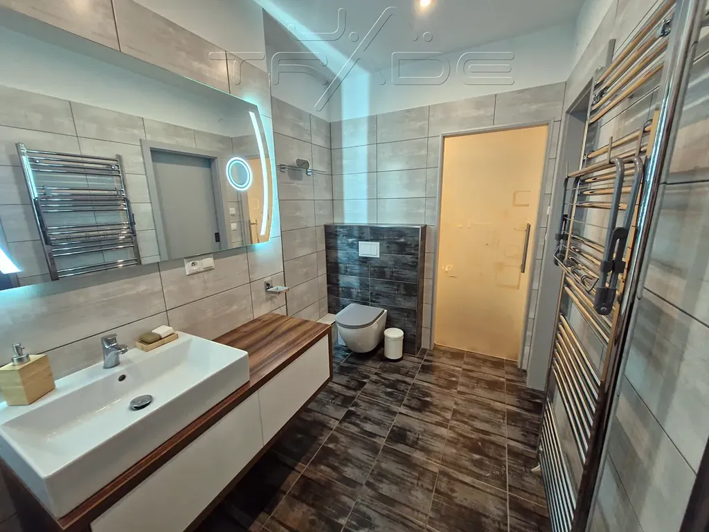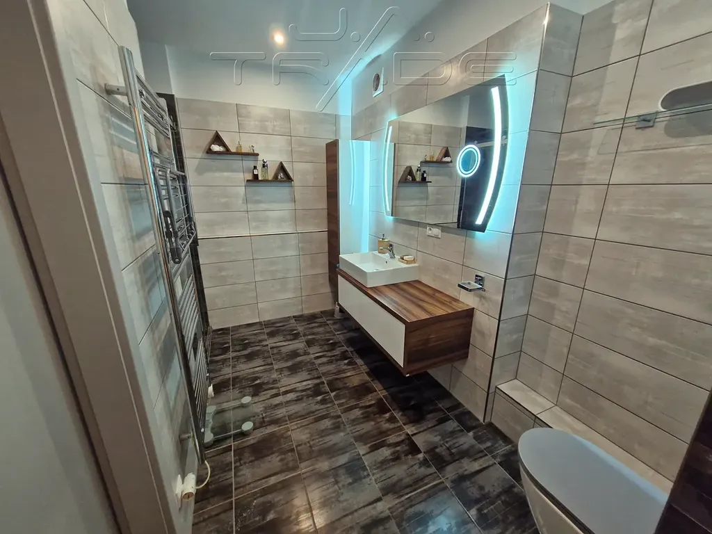 Ve výhradním zastoupení majitele nabízíme k prodeji krásný prostorný slunný byt 2 + kk s balkonem v osobním vlastnictví v novostavbě domu v Brně - Dolních Heršpicích na ulici Vomáčkova. Bytová jednotka se nachází ve 2. podlaží domu. Dům byl postaven a zkolaudován v roce 2021, je postaven dle moderních technologií ve vynikajícím stavu. Celková plocha bytu je 69 m2. Původně byla tato bytová jednotka koncipována jako 3+kk, po velmi malých úpravách ji lze vrátit zpět do této původní rozměrnosti. Rozměr obývacího pokoje s kuchyňským koutem orientovaným na jih do vnitrobloku činí 33,5 m2, odkud se dostaneme na balkon o velikosti 3,15 m2, dále ložnice orientovaná na severní stranu je o skladebnosti 12,5 m2. V bytové jednotce, která je velmi účelně rozložena, dále nalezneme prostornou koupelnu se sprchovým koutem a toaletou o velikosti 7,45 m2, dále technickou místnost o rozměru 2,48 m2, kde se nachází například pračka se sušičkou, a předsíň s vestavěnými skříněmi o rozloze 9,7 m2. Velmi praktickou součástí bytu jsou také dvě samostatné šatny. K bytu taktéž přísluší sklepní kóje o velikosti 3,0 m2, která se nachází v suterénu domu. Vytápění bytu je řešeno elektrickým podlahovým vytápěním a ohřev vody elektrickým bojlerem. Samozřejmostí je klimatizační jednotka v bytě. Kuchyňská linka s ostrůvkem byla zhotovena na zakázku včetně všech vestavných spotřebičů (indukční varná deska, horkovzdušná trouba, mikrovlnná trouba, myčka, digestoř). Celkové měsíční náklady na bydlení činí včetně fondu oprav, služeb a energií pro 2 osoby 5400,- Kč/ měsíc.
