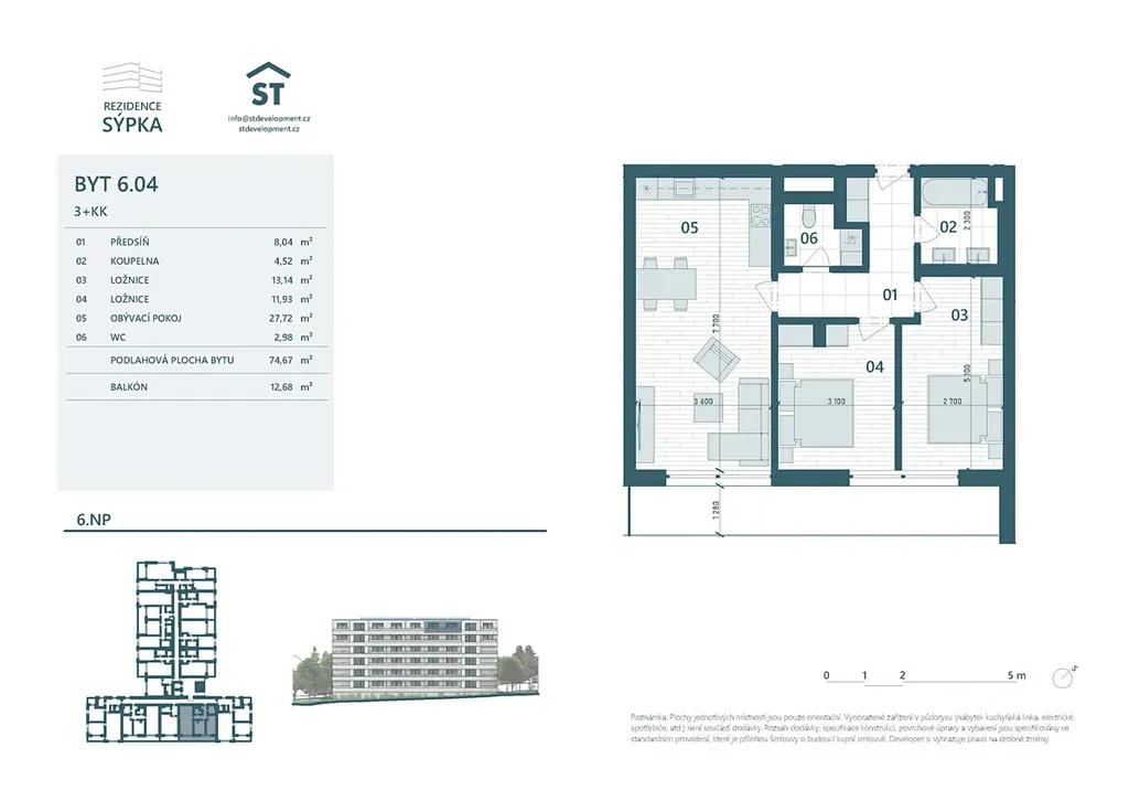 Nabízíme velmi příjemný byt 3+kk v 6. nadzemním podlaží projektu Rezidence Sýpka, vhodný pro mladou rodinu nebo pár.