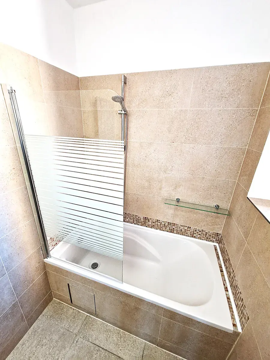 V bytě je prostorná koupelna s oknem. Byt disponuje sklepem o velikosti 6m2, který může sloužit k uložení kol či kočárku.