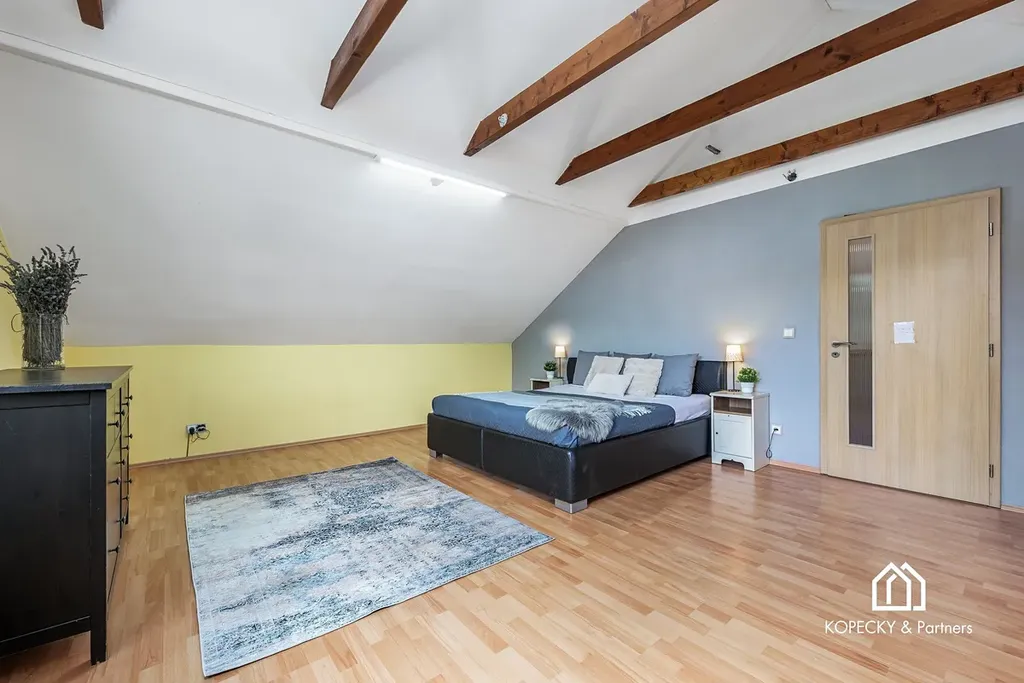 První patro domu nabízí čtyři prostorné ložnice, které zajistí dostatek soukromí a prostoru celé rodině. Hlavní ložnice je velkoryse řešena pro maximální pohodlí, zbývající tři pokoje lze využít jako dětské pokoje, pokoje pro hosty či další pracovny. V horním patře najdete také komfortní koupelnu s vanou a sprchovým koutem, která vám zajistí příjemný relax.