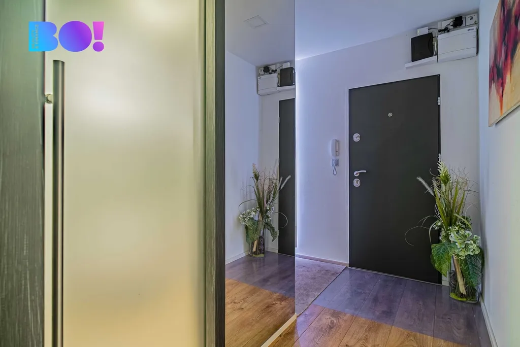 Z obývacího pokoje se přes posuvné dveře dostanete do ložnice, kde se nachází šatní skříň vyrobená na míru, do které lze doslova vstoupit. Na ložnici navazuje výrazně zvětšená zasklená lodžie (2,5 × 1,6 m), na kterou se pohodlně vejde posezení nebo ji můžete využít třeba k pěstování zeleniny. Bonus navíc? Přímý výhled na Javorový vrch.