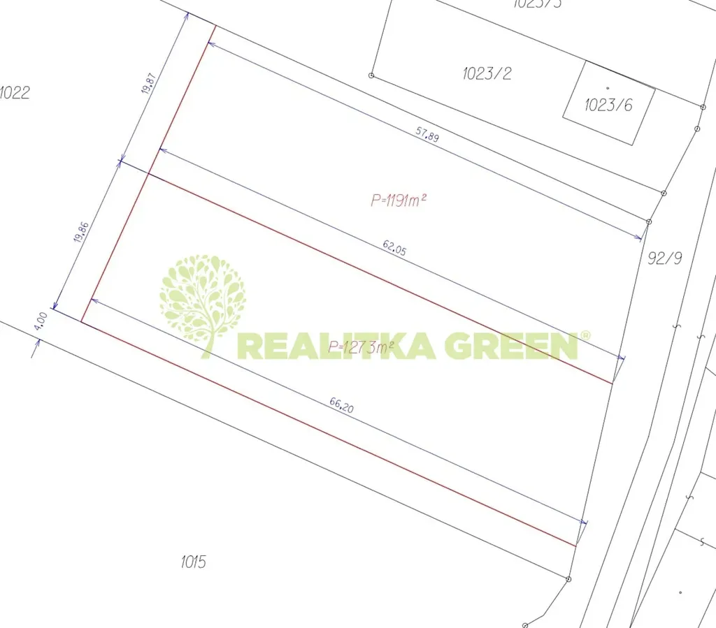Celková plocha je 1.273 m2, územním plánem vedeno jako plocha určená k bydlení a plochy zemědělské.