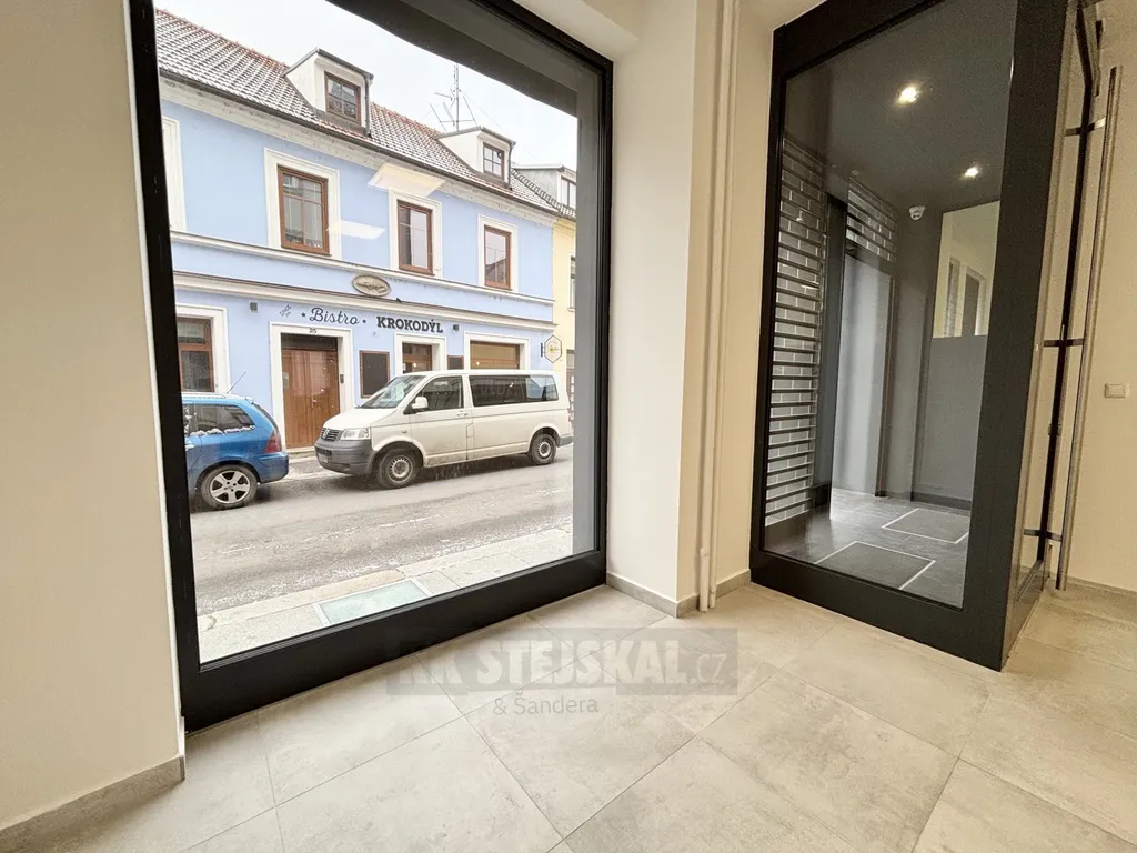 Prostor je situován v přízemí domu a nabízí výraznou velkou výlohu, která zajišťuje výbornou viditelnost a otevírá široké možnosti využití pro různé druhy podnikání. Vstup je vkusně řešen bezpečnostní roletou a kompletně prosklenými dveřmi, což podtrhuje moderní a profesionální charakter prostoru. Kanceláře jsou prakticky rozděleny na přední hlavní část s výlohou a zadní sekci, která poskytuje více soukromí a klidu. Součástí prostoru je vlastní kuchyňka a toaleta, která prošla kompletní rekonstrukcí. Interiér působí velmi reprezentativně především díky velkoformátové dlažbě položené v celé ploše kanceláří a celkové kvalitě provedené rekonstrukce. Samozřejmostí je stabilní internetové připojení prostřednictvím optického kabelu. Kromě hlavního proskleného vstupu z ulice je k dispozici také druhý samostatný vstup z boční chodby, který může být praktickou výhodou například pro zaměstnance, zásobování nebo oddělení klientské a provozní části. Velkou výhodou je rovněž možnost pronájmu parkovacích stání přímo na parkovišti za nemovitostí.