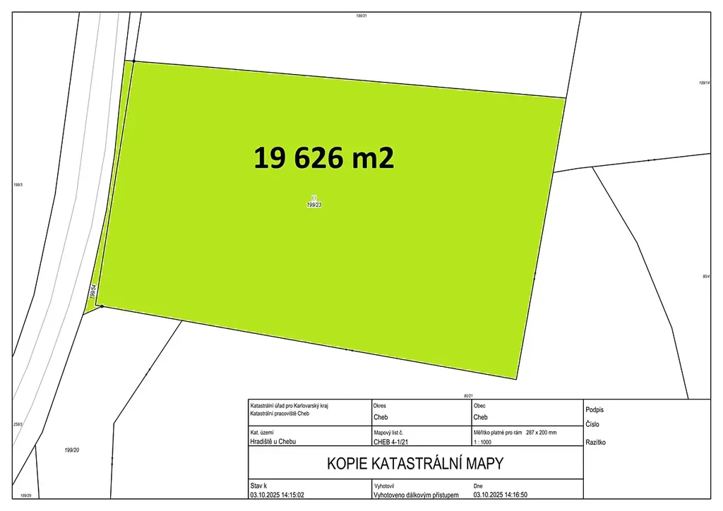 Prodej komerčního pozemku, Cheb, Nižnětagilská, 19626 m2 (ID: 1933407)
