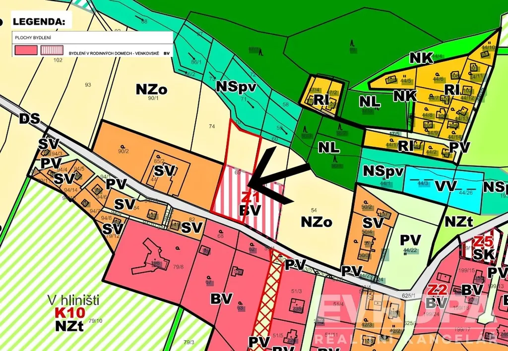 Dle územního plánu je cca polovina pozemku zastavitelná, ideální pro stavbu rodinného domu. Zbytek tvoří zelená plocha, kterou si můžete proměnit v zahradu, sad nebo prostor pro relaxaci. Elektřina je na hranici pozemku, vodu i odpad řešíte vlastním zdrojem a čističkou – absolutní soukromí a nezávislost.