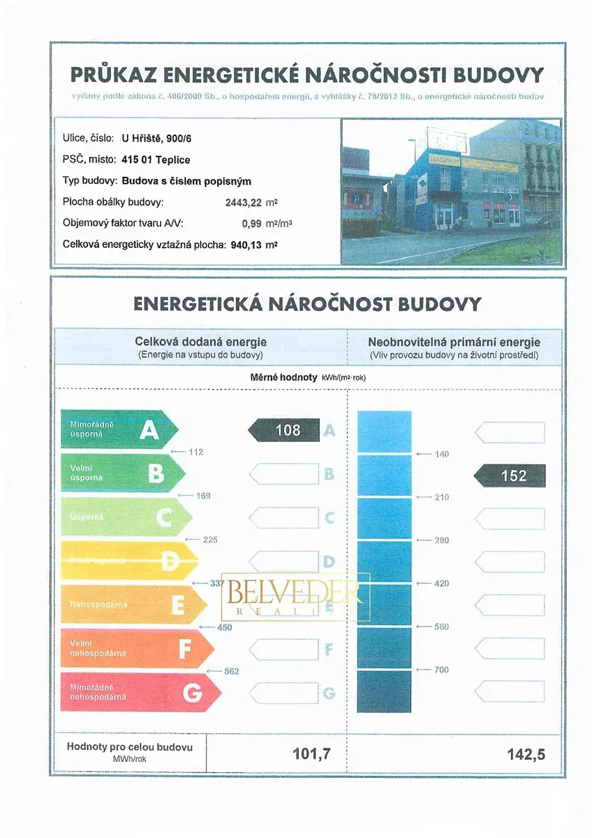 | Ukazatel energetické náročnosti | 108 kWh/m2 za rok |