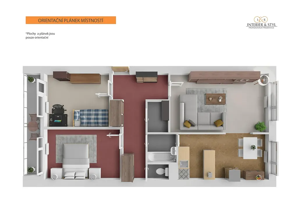 • Plastová okna se žaluziemi v celém bytě (zajistí tepelný komfort a ticho).