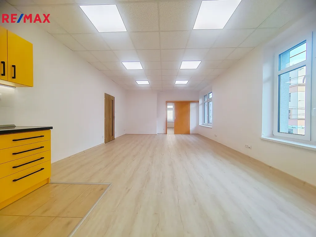 Součástí prostoru je nová kuchyňská linka, jinak je jednotka nezařízená a umožňuje flexibilní uspořádání dle potřeb nájemce. Velkou výhodou je 8×2 datové rozvody, ideální pro kancelářský provoz, IT služby, projekční činnost či poradenské firmy. Osvětlení je řešeno moderními LED panely s možností změny chromatičnosti (CCT), které umožňují přizpůsobení pracovního prostředí.