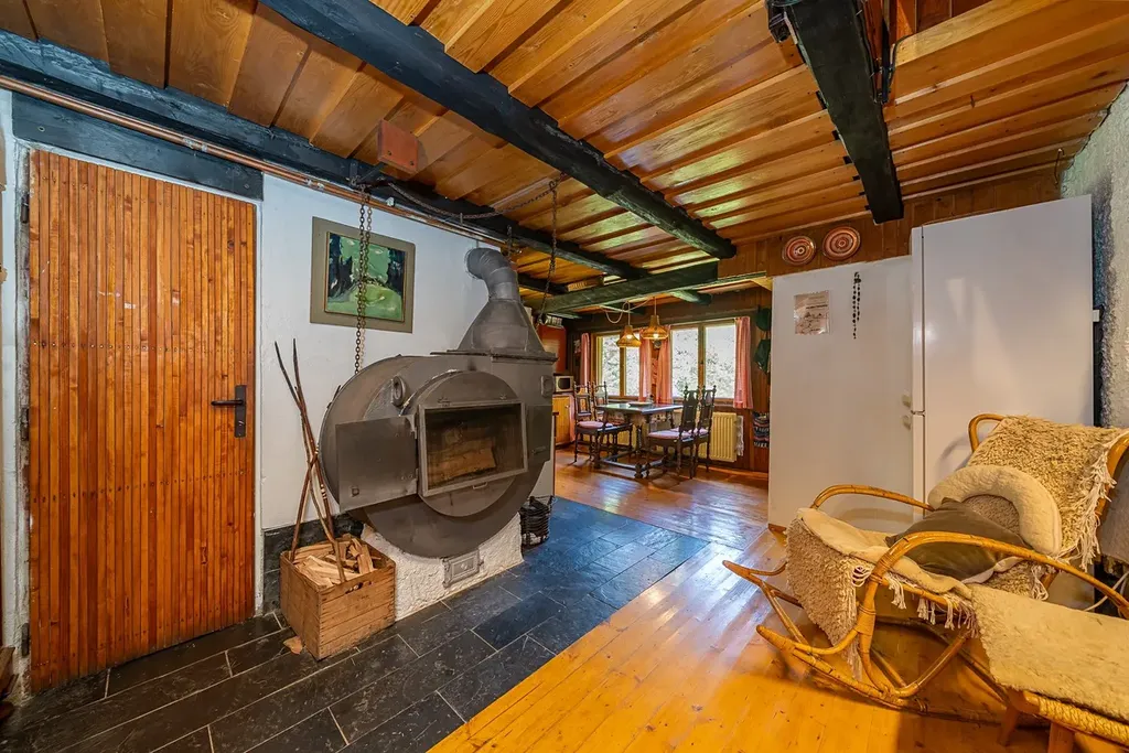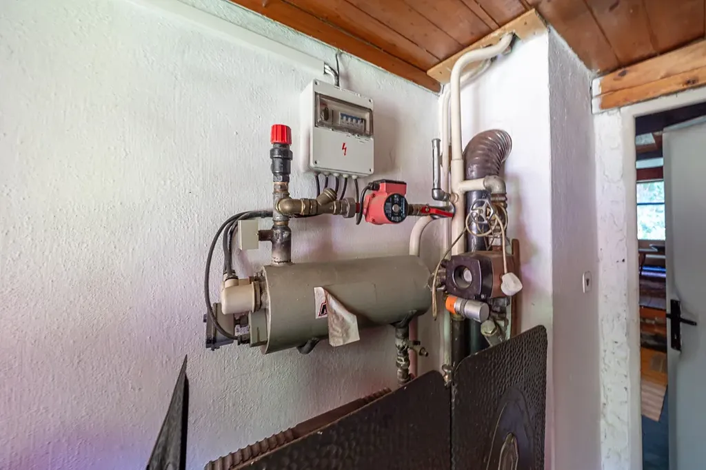 V hlavní obývací místnosti v přízemí je krb, v kuchyni stylová kamna na vaření a v technické místnosti kotel na tuhá paliva s elektrokotlem. Tento systém zajišťuje topení do radiátorů a ohřev vody.