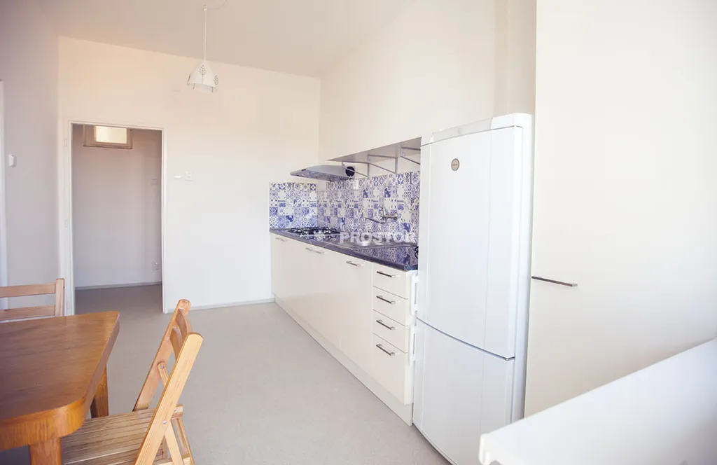 Moderní kuchyň je plně vybavena kuchyňskou linkou s lednicí, plynovou varnou deskou, troubou, digestoří a myčkou. Z kuchyně je přímý vstup na prostorný balkon orientovaný do klidné ulice, ideální pro ranní kávu či večerní relaxaci.