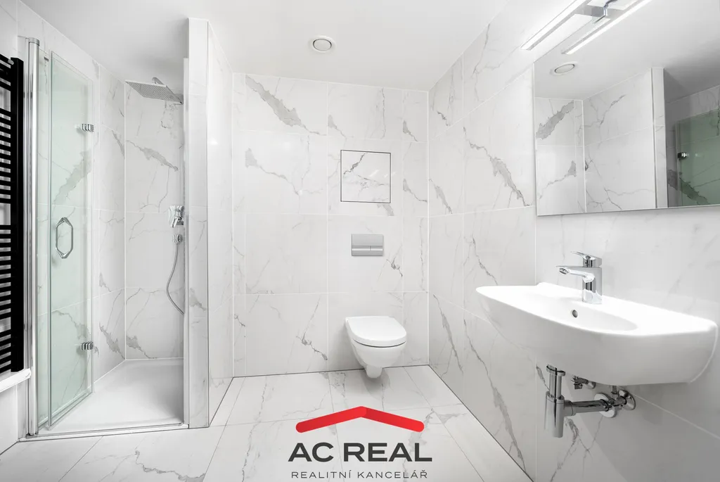 Bezkontaktní čipový vstup, podlahové topení s ovládáním přes mobil, venkovní žaluzie, centrální rekuperace.