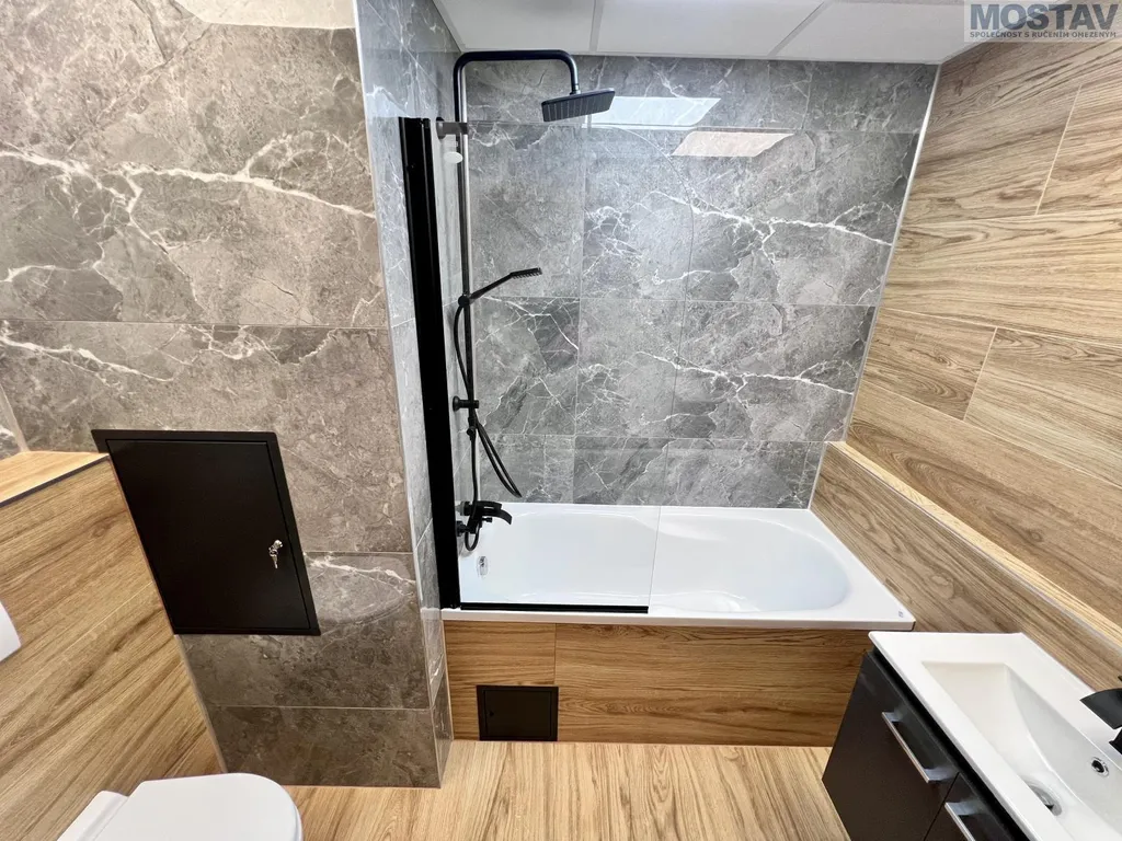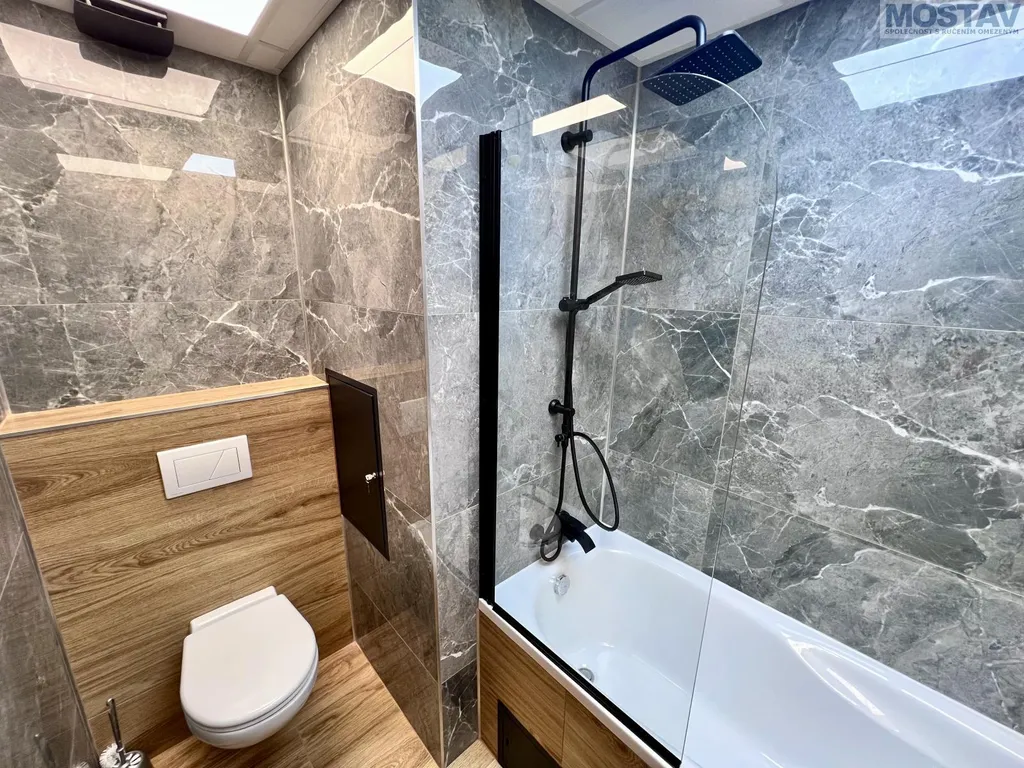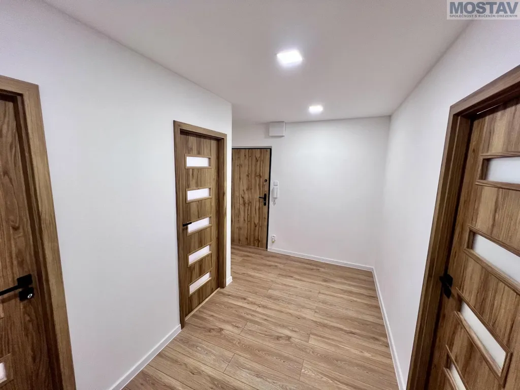 Byt prošel kompletní a kvalitní rekonstrukcí nové podlahy, štuky a výmalba, zděné bytové jádro, moderní koupelna se závěsným WC, snížené stropy v koupelně, předsíni, kuchyni i obývacím pokoji. Součástí je nová kuchyňská linka včetně vestavěných spotřebičů a myčky. Dále nové interiérové dveře s obložkami, kompletně nové rozvody elektřiny a odpadů, nové vypínače a zásuvky, žaluzie den, noc a další.