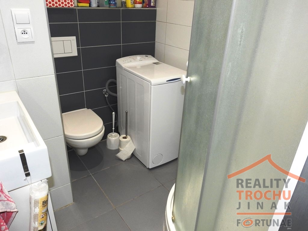 Dispozice: 1 obytná místnost, kuchyň, koupelna (sprchový kout, WC), šatna. Byt je vybaven: mikrovlnnou troubou, komodou, pracovním stolem, policí, rohovým rozkládacím gaučem, jídelním stolem + 4 židle.