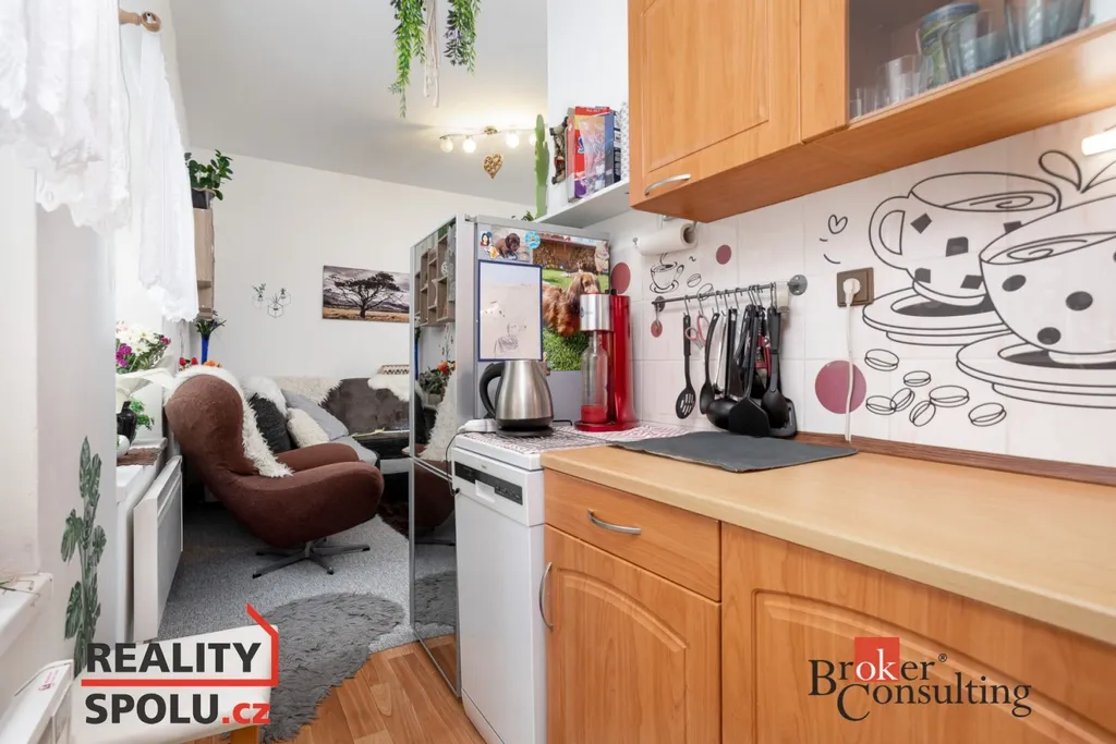 Byt se skládá z pokoje, který je propojen s kuchyňským koutem a samostatného pokoje, který může sloužit jako ložnice. Samozřejmostí je koupelna s vanou a oddělené WC.