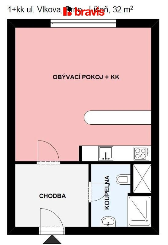 Pronájem bytu 1+kk, Brno, Vlkova, 32 m2