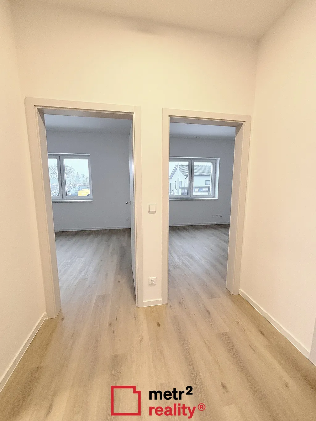 Nabízíme Vám k pronájmu moderní novostavbu zděného přízemního pasivního rodinného domu v obci Hnojice. Dispozice domu je 4+kk s celkovou užitnou plochou 97 m2 a pozemkem o celkové výměře 633 m2. Dům v řadové zástavbě s terasou 25 m2 je nepodsklepený, ze které je krásný výhled na Jeseníky. Vytápění domu je řešeno pomocí teplovodního systému, který obsahuje tepelné čerpadlo typu vzduch-voda, které zajišťuje pokrytí tepelných ztrát objektu. Součástí tepelného čerpadla je i zásobník na TUV. Ve všech místnostech RD je podlahové vytápění, které je v koupelně doplněno o topný žebřík. Součástí systému je také centrální rekuperační jednotka, jež zajišťuje přívod čerstvého vzduchu do obytných místností a odvod znehodnoceného (odpadního) vzduchu z koupelny, WC a kuchyně. FVE elektrárna, 3 panely na střeše, jednofázový střídač. Na zahradě je umístěna retenční podzemní nádrž pro sběr a následné využití dešťové vody s kapacitou 8 m3. Dešťová voda je využita na splachování WC a zálivku zahrady. Dům je napojen na vodu z lokálního zdroje, kanalizace obecní. Komfortní parkování pro dvě vozidla před domem s nabíjecím systémem pro elektro vozy. Cena nájemného činí 30.000 Kč měsíčně +3.500 inkaso. Dům je volný od 1.2.2026. PENB skupiny A.