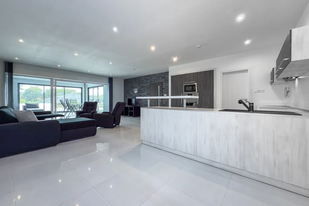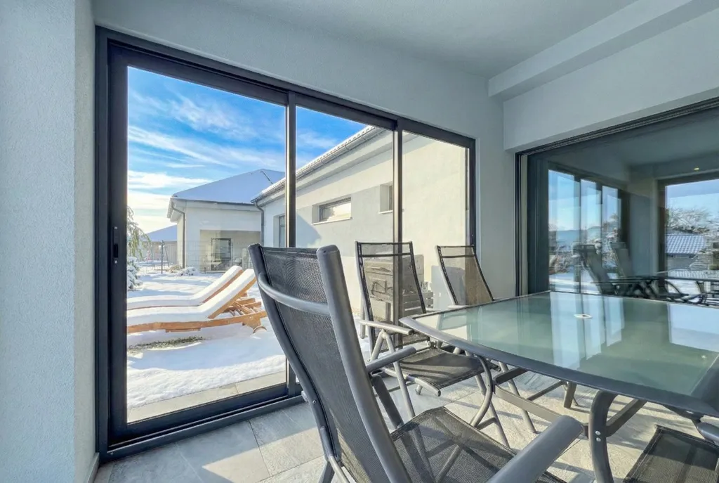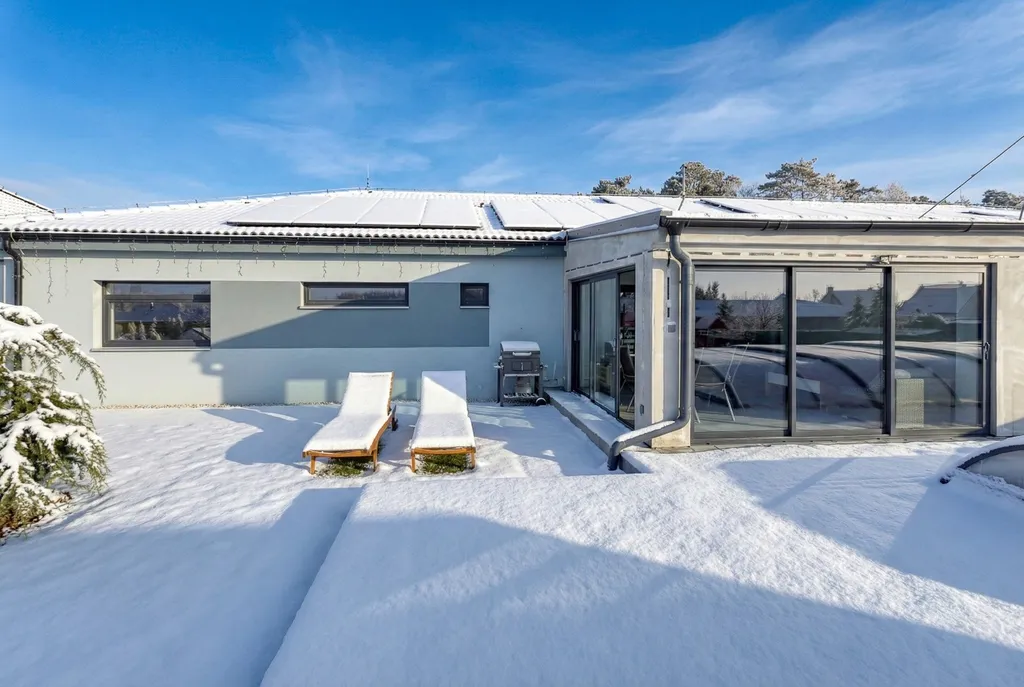 Interiér domu je navržen s důrazem na pohodlí i praktičnost. Dispozice zahrnuje vstupní předsíň, technickou místnost, šatnu, koupelnu, samostatné WC, tři obytné pokoje a velkorysý obývací prostor s kuchyní a praktickou komorou. Dominantou domu je zimní zahrada, která plynule navazuje na obývací část a nabízí příjemné místo pro relaxaci po celý rok.