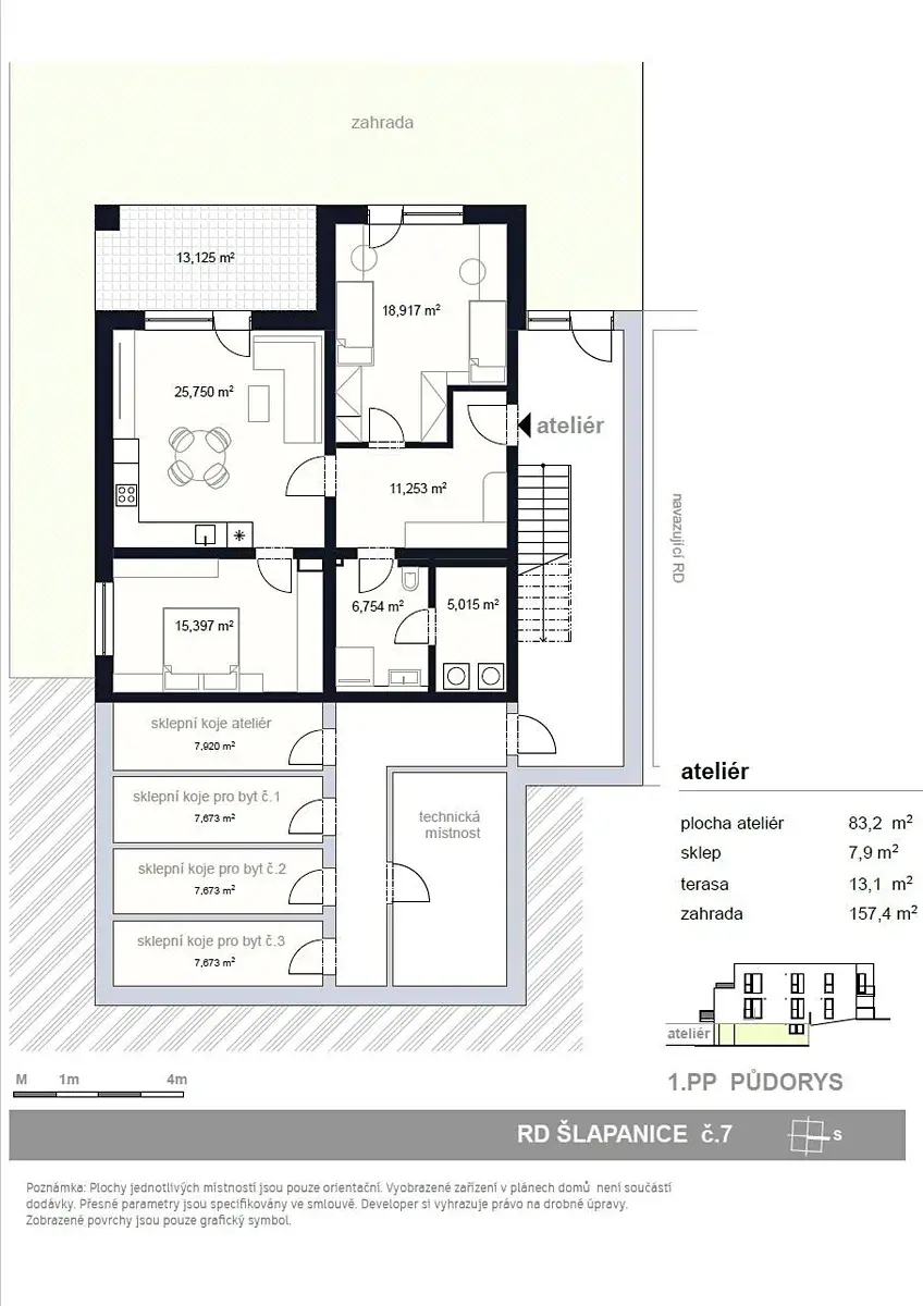 V tomto projektu nabízíme k prodeji ateliér 3+KK s terasou a zahradou.