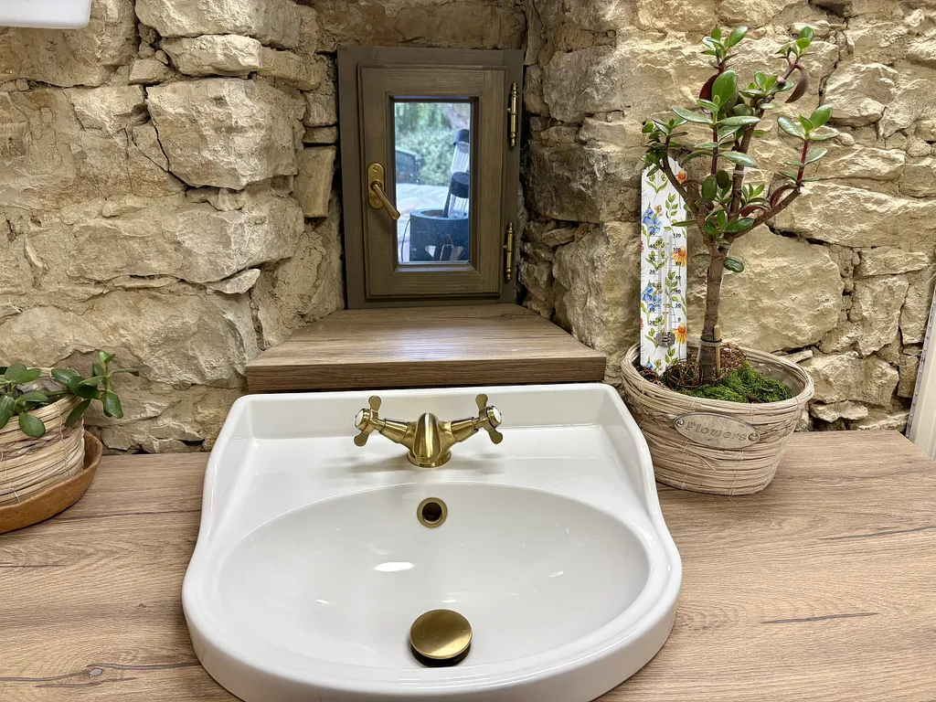 • koupelna s rohovou vanou, toaletou a umyvadlem, novým kondenzačním plynovým kotlem