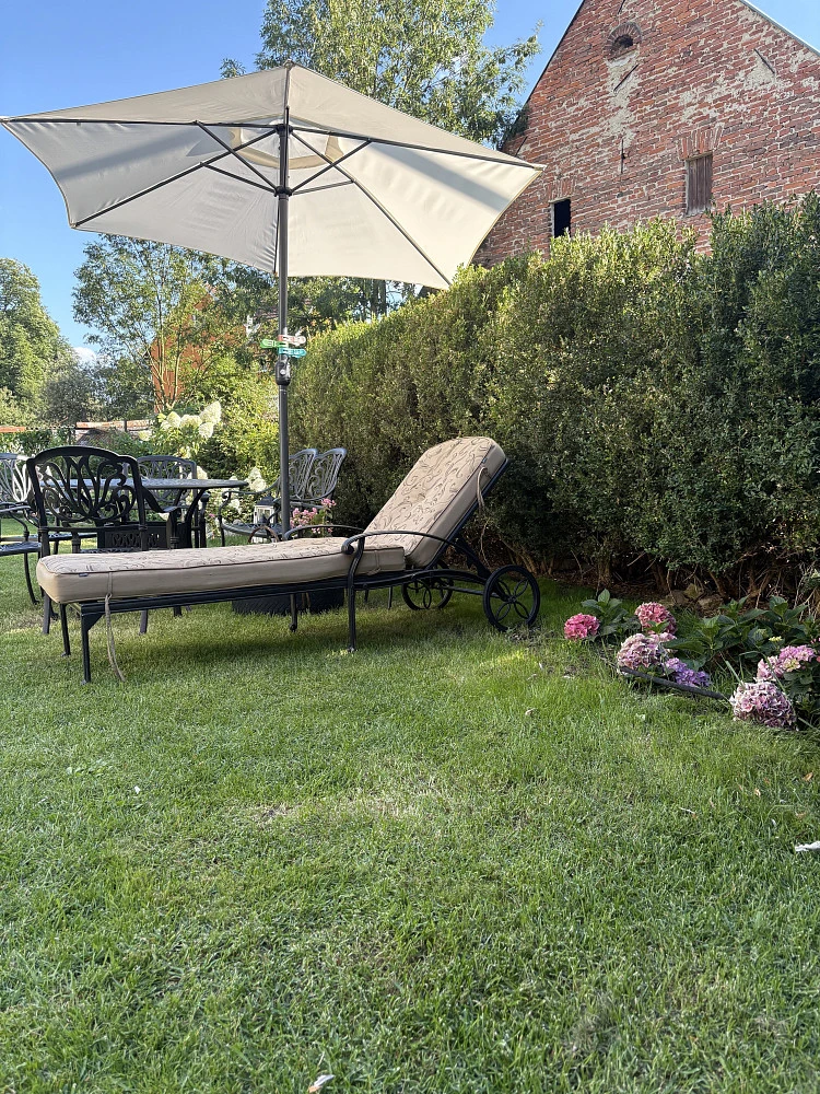 • světlý obývací pokoj s 2x rozkládacím gaučem , jídelním stolem, krbovými kamny a komodou, dvě velká okna do zahrady