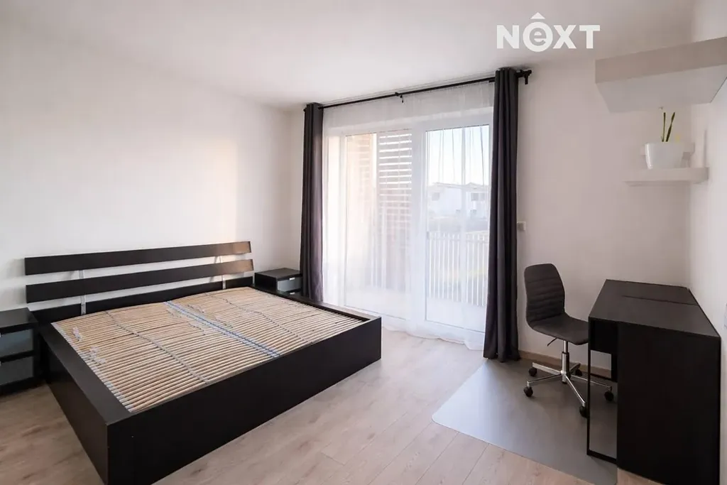 Ložnice o ploše 19,11 m² je vybavena manželskou postelí a prostornou šatní skříní a také vstupem na lodžii. Koupelna disponuje sprchovým koutem s hydromasážním panelem ASTREA, toaleta je vybavena bidetovou sprchou. Oba pokoje jsou orientovány na jižní stranu, což zajišťuje dostatek denního světla po celý den. Součástí bytu je sklep (1,95 m²) a vyhrazené parkovací stání ve vnitrobloku domu. Komfort bydlení dále zvyšují velká okna s trojskly, předokenní žaluzie a klimatizace. Byt je kompletně zařízený nábytkem.