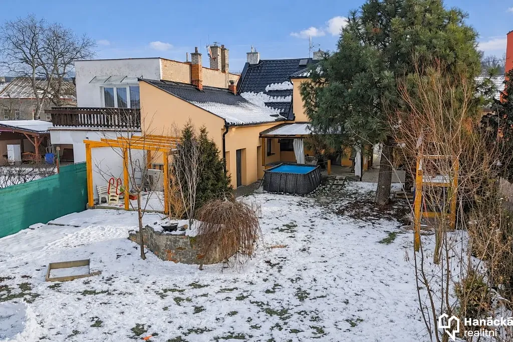 Pozemek o velikosti 710 m² nabízí kryté parkovací stání, terasu, bazén, vířivku, dětské hřiště, vzrostlé stromy a dostatek soukromí.