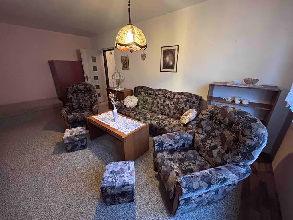 Byt je sice v původním stavu, ale soustavně a pečlivě udržován. Má plastová okna vč. rolet a je plně vybaven původním nábytkem. Vstupem do bytu vejdeme do předsíně, ze které se dále vchází do koupelny s vanou a umyvadlem, WC a je zde k dispozici pračka.