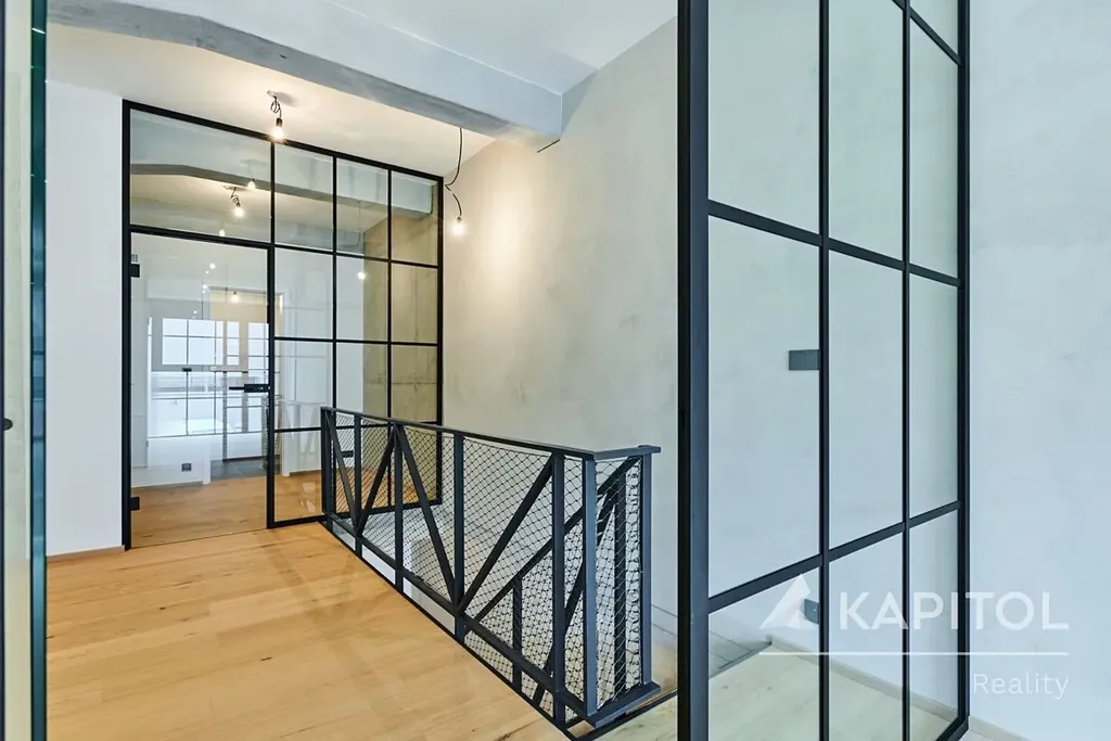 V Loftu jsou zachovány původní prvky industriálu, které architekti krásně zkombinovali s nadčasovým designem. Došlo tak k nádhernému spojení původní a moderní architektury. Podlahy v obytných místnostech a chodbě jsou pokryty dřevěnou podlahou Parky Pro a v koupelnách, je dlažba. V celém bytě vyjma dřevěných galerií je podlahové vytápění. V bytě je klimatizace a předokenní žaluzie na elektřinu ovládané. Nová kuchyňská linka je vybavena spotřebiči: lednicí s mrazákem, elektrickou troubou, mikrovlnou troubou, varnou deskou a myčkou nádobí.