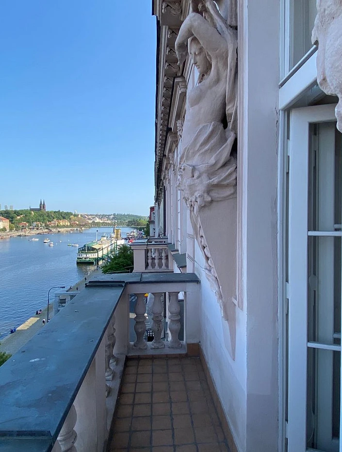 Nabízíme k pronájmu krásný a velmi prostorný byt 5+1, 205 m², ve 2. patře novorenesančního činžovního domu na rohu ulic Lidická a Hořejší nábřeží v Praze 5. K dispozici je pět velkých pokojů, které poskytují nádherné výhledy na Pražský hrad, Národní divadlo, Vyšehrad a povodí Vltavy, dva z pokojů mají vlastní balkón směrem k řece Vltavě, jeden balkón již zařízen příjemným posezením. V bytě je dále plně vybavená samostatná kuchyň (lednice, mrazák, myčka, sporák s troubou a digestoří, mikrovlnka) se spíží a vstupem na balkón orientovaný do klidného vnitrobloku, koupelna s vanou s sprchovým koutem, samostatná toaleta s umývátkem, dvě komory a velká vstupní chodba. Byt se nabízí nezařízený kromě kuchyňské linky se spotřebiči, pračky v koupelně a starožitné vestavné skříně v jednom z pokojů. Na podlaze kombinace původních dubových parket a dlažby. Dřevěná špaletová okna, vysoké stropy a mnoho historických detailů činí tento byt unikátním. Vytápění a ohřev vody plynovým kotlem. K dispozici optika pro připojení internetu. Samotný dům v minulosti rovněž citlivě renovován s důrazem na zachování původních prvků, bez výtahu.