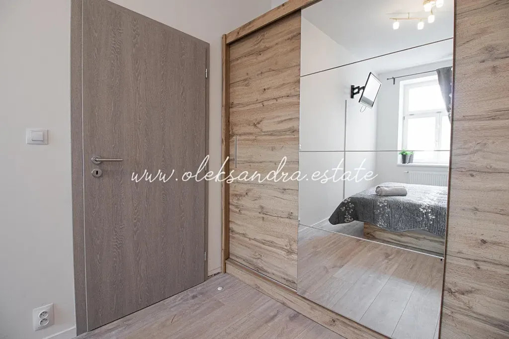 Byt se nabízí plně vybavený. Kuchyně disponuje lednicí, elektrickou troubou, varnou deskou, digestoří a jídelním stolem se židlemi. Součástí ložnice je postel s nočním stolkem a šatní skříň. V koupelně je sprchový kout, umyvadlo a toaleta.
