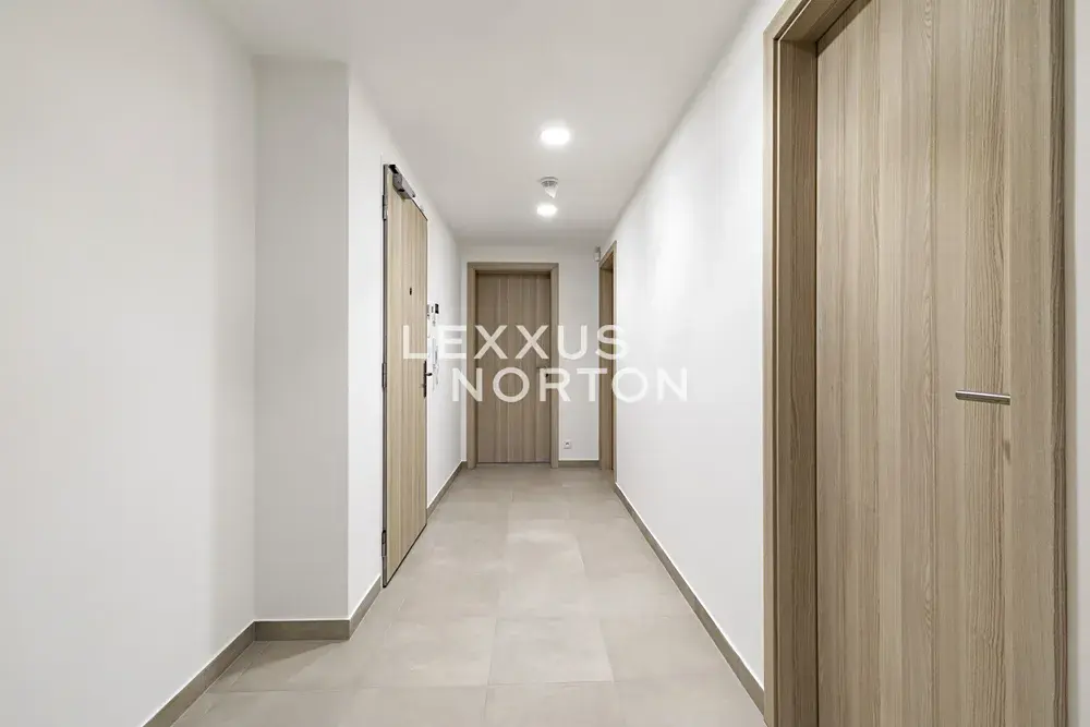 Byt disponuje kuchyňským koutem vybaveným indukční varnou deskou, troubou, lednicí, mrazákem a myčkou nádobí. Součástí bytu je komora i chodba s vestavěnými skříněmi a koupelna se sprchovým koutem a pračkou. Komfort bydlení zajišťuje moderní systém větrání s rekuperací tepla a bezpečnostní vstupní dveře.