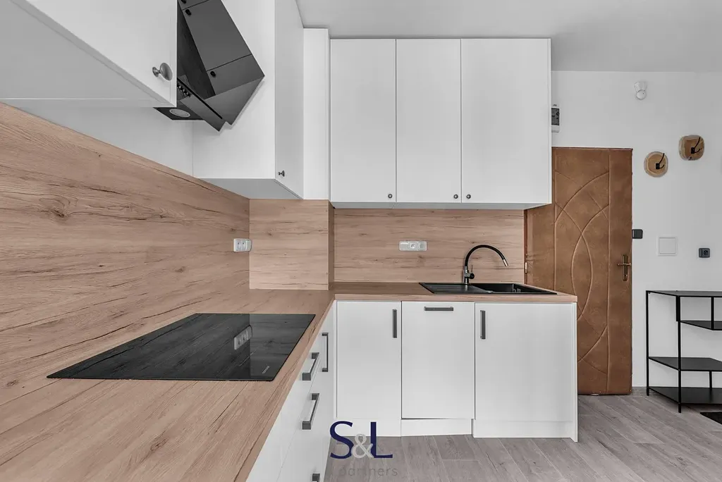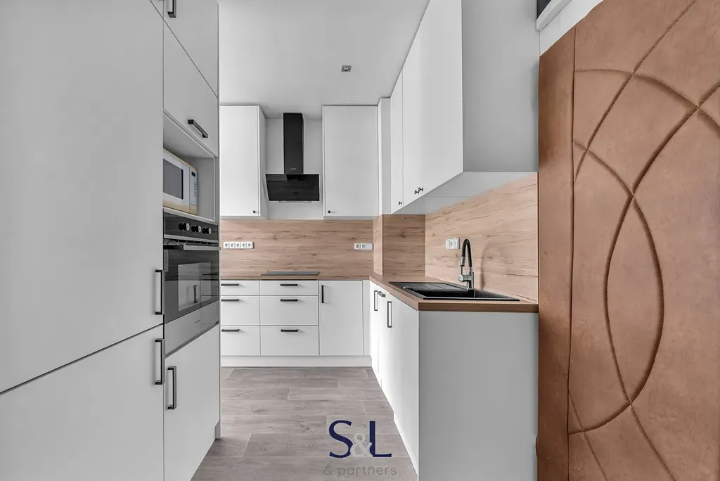 Dispozici bytu tvoří předsíň, ze které je vstup do zděné koupelny s vanou, toaletou a pračkou, dále do kuchyňského koutu s obývacím pokojem a do ložnice s prostornou lodžií. Nová kuchyňská linka je vybavena digestoří, indukční varnou deskou a vestavěnými spotřebiči, mezi které patří myčka, lednice s mrazákem a trouba. Obývací část je zařízena pohovkou, komodou a jídelním stolem se židlemi, ložnice disponuje šatní skříní, komodou a novými žaluziemi.