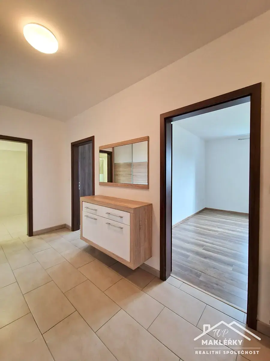 Nabízím Vám hezký, prostorný byt k pronájmu o dispozici 3+KK (92 m2) s lodžií ( 8,70 m2), sklepní kójí ( 1,40m2) s vlastním parkovacím místem v obci Pečky, ulice V Kaštánkách. ( VOLNÝ OD 1.3.2026). Bytová jednotka je zařízena kuchyňskou linkou s kameninovým dřezem, elektrickou- indukční deskou, pečící troubou, mikrovlnou troubou, myčkou, ledničkou. Dále v prostorné chodbě se nachází vestavěná skříň, komoda, botník, věšák a zrcadlo. Druhá vestavěná skříň je k dispozici v jednom pokoji. Dispozice bytové jednotky: jedná se o tři neprůchozí pokoje. Obývací pokoj (35.10m2) společně s kuchyňským koutem, kde se také nachází spíž ( 1,90m2), lodžie .Prostorná chodba (12.30m2) z které se vchází do dalších dvou pokojů ( 18,10m2 a 18,20m2),koupelna se sprchovým koutem (4,80m2), samostatná toaleta ( 1,60m2). Byt je situovaný v prvním patře (poslední patro) z celkových dvou nadzemních podlaží (přízemí a první patro) zděného domu bez výtahu. V bytovém domě lze využít kolárnu. Parkování je možné přímo před domem: jedno vlastní parkovací místo. Internet je možný přes kabelovou přípojku (300/100 Mbit). Energetická náročnost domu, tzv. PENB , momentálně není zhotoven. Uvádíme dle zákona třídu G. Měsíční nájemné 21.000,-Kč + záloha na poplatky ve výši: 2.600,-Kč , elektřinu - zálohu si převede na sebe sám nájemník. Kauce ve výši dvou měsíčních nájmů( 42.000,-Kč), provize RK jedno nájemné ( 21.000,-Kč) Ihned volné k nastěhování. Výborná dopravní dostupnost do Kolína vlakem cca 16 - 19 minut, do Prahy cca 38 - 40 minut ( interval po 1/2 h.)