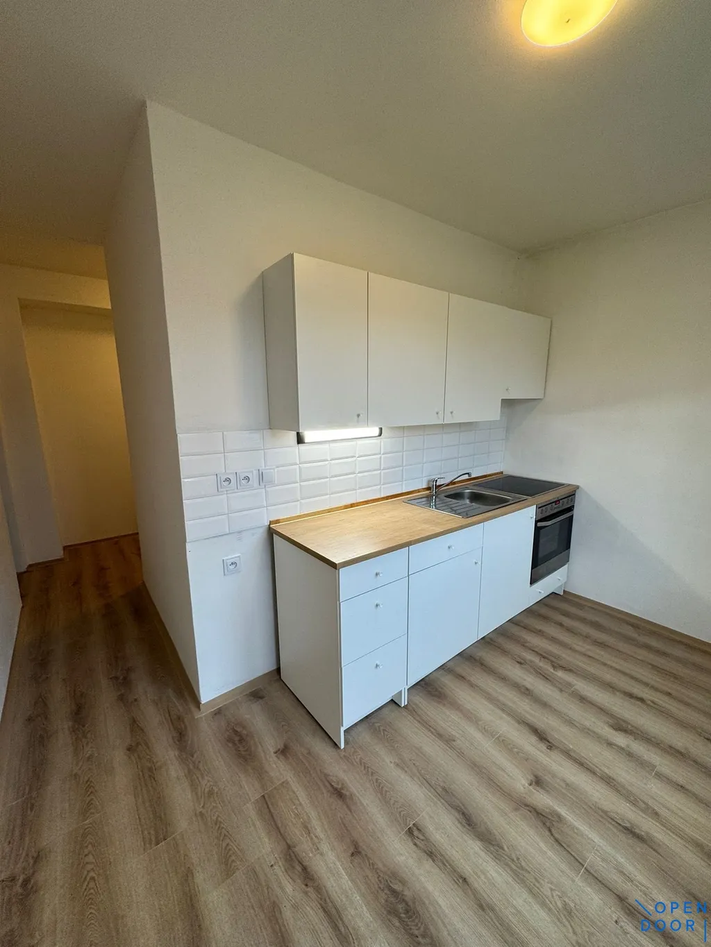 Byt je nyní po kompletní rekonstrukci a byt nabízí dvě samostatné místnosti, dále samostatnou kuchyň a koupelnu s toaletou. V kuchyni je nainstalována kuchyňská linka IKEA Knoxhult s vestavěnými spotřebiči: indukční deska, elektrická trouba a digestoř. Koupelna je se sprchovým koutem, umyvadlovou skříňkou s umyvadlem a s keramickými obklady/dlažbou, podhled s bodovým osvětlením.