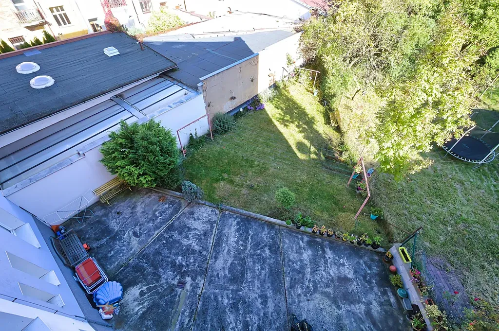 Součástí bytu je i sklepní kóje o rozloze 11m² a také možnost užívání společné zahrádky ve vnitrobloku, do které je přístup pouze z domu.