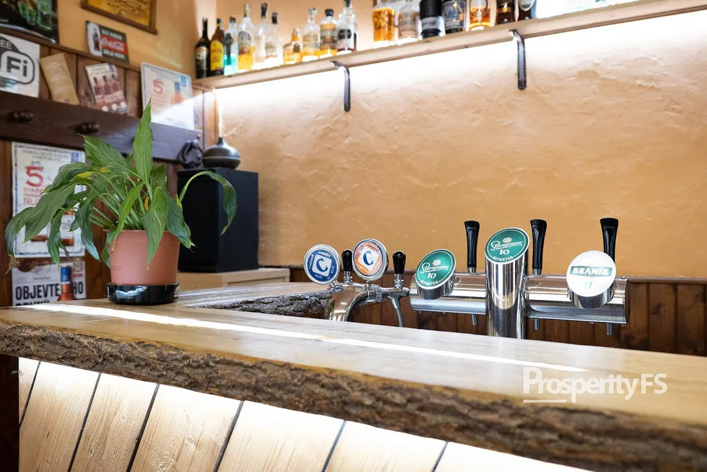 Nemovitost disponuje samostatným vstupem z ulice, hlavním sálem s barovým pultem, zázemím pro personál, přípravnou pro studenou kuchyň a oddělenými toaletami pro dámy a pány. Významnou výhodou je flexibilní vytápění – můžete si vybrat mezi plynovým a elektrickým kotlem. Průtokový ohřívač navíc zajišťuje neustálý přísun teplé vody.
