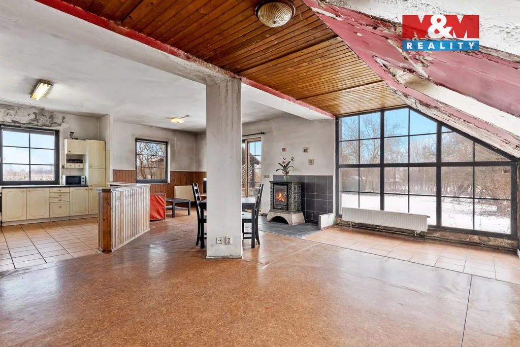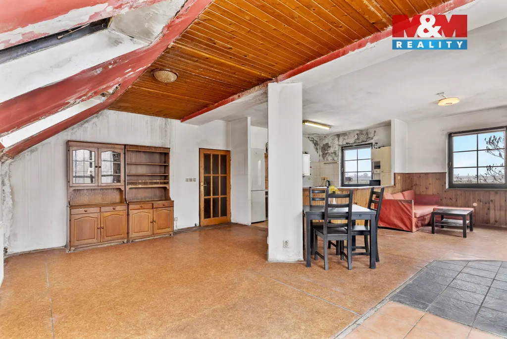 Technický stav nemovitosti vyžaduje řešení – střešní krytina je poškozená a dochází k zatékání do objektu, je nutné připojení na veřejnou kanalizaci a částečná oprava elektroinstalace.