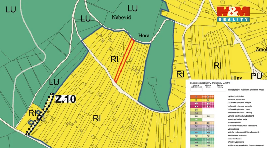 Uzemní plán umožňuje na pozemku výstavbu nemovitosti pro rekreaci s maximální zastavěnou plochou 55 m2.