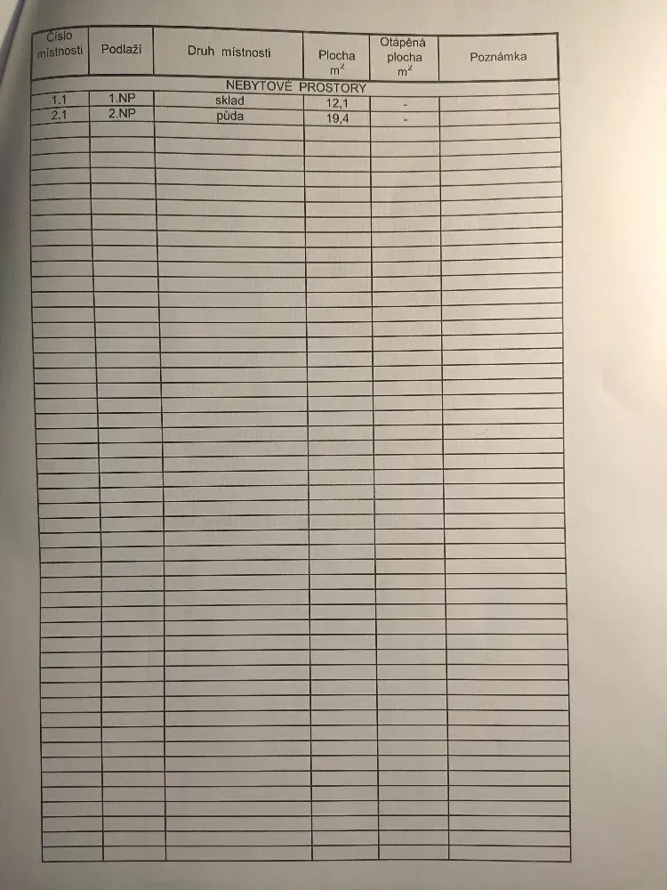 Parametry nemovitosti