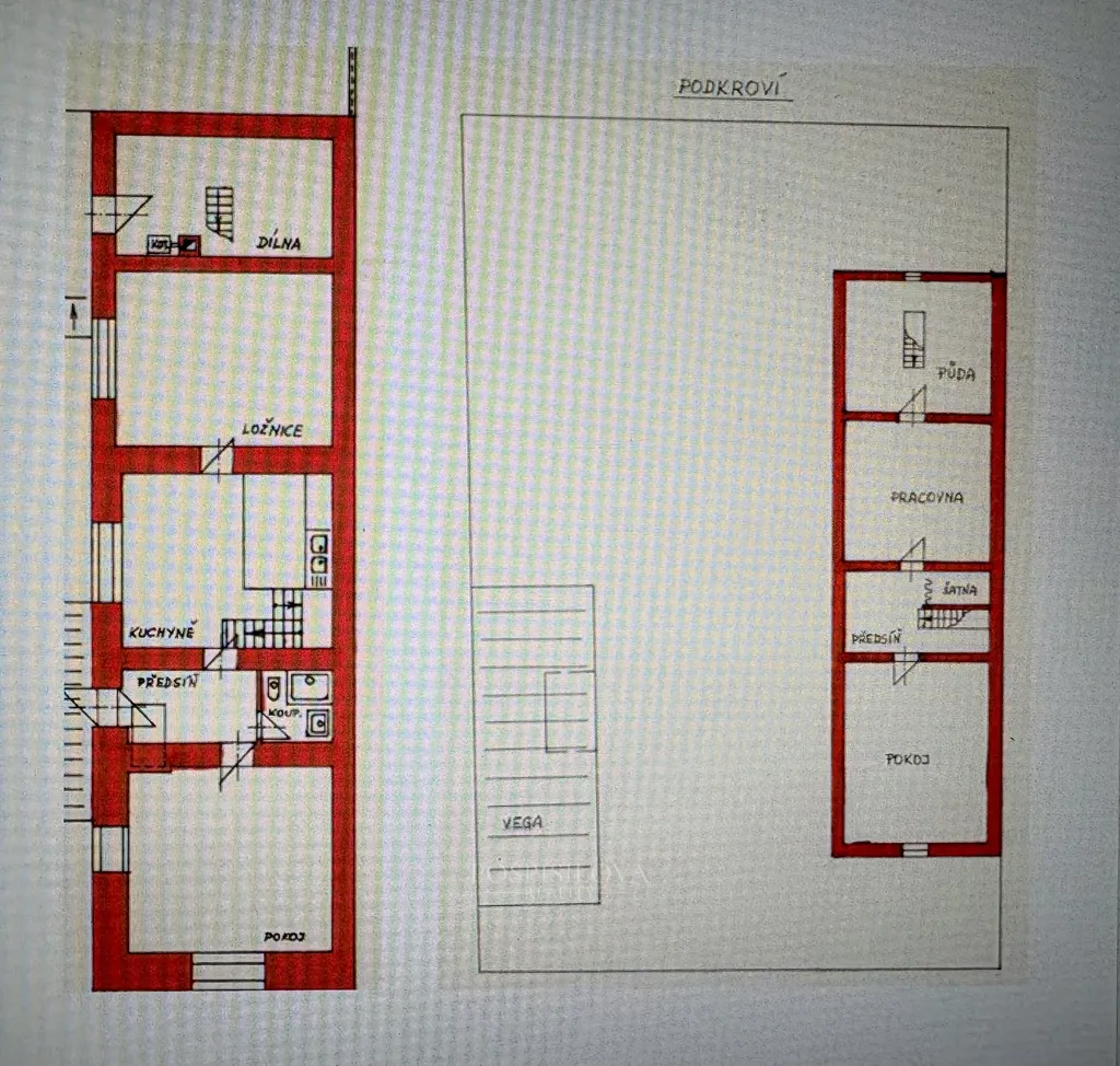 K domu patří další prostory – sklep, garáž, kůlna, dílna, zahrada s dvorkem a horní nevytápěné patro se dvěma menšími pokoji – ideální jako letní přespání pro návštěvy nebo praktický prostor navíc. Celková výměra pozemku je 493 m².