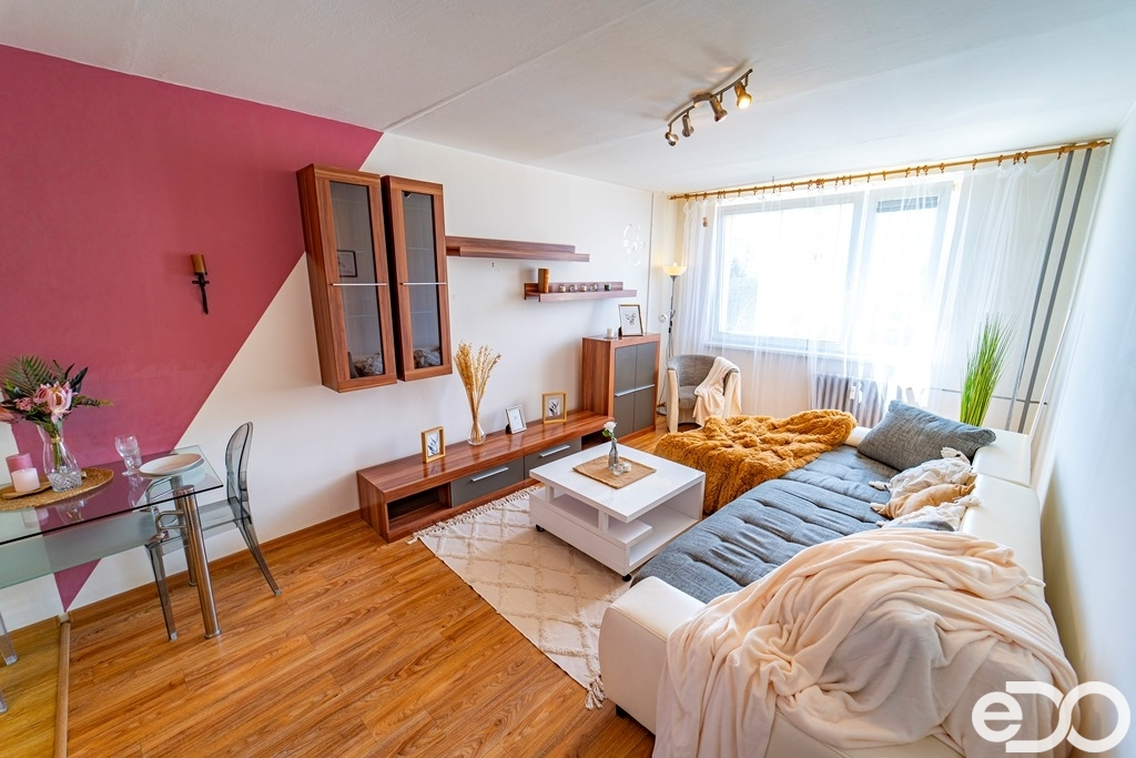 Byt je plně zařízený a připravený k okamžitému nastěhování. Dispozice zahrnuje obývací pokoj s kuchyňským koutem, samostatnou ložnici, koupelnu a WC. Kuchyňský kout je vybaven základními spotřebiči, v bytě nechybí nábytek umožňující komfortní bydlení bez nutnosti dalších investic. Byt je k dispozici od 1. 3. 2026.